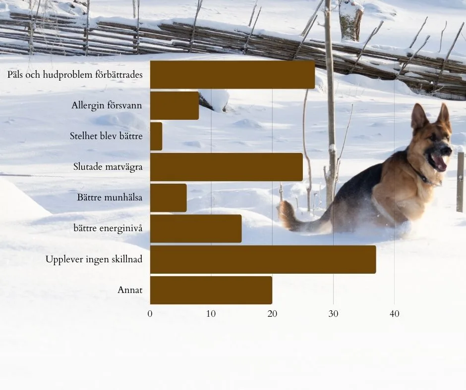Slutligen uppgav 157 personer att deras hundar upplevt andra förbättringar som inte föll inom de specifika kategorierna, såsom att magproblem helt har förvunnit. Detta tyder på att färskfoder kan ha många olika positiva effekter beroende på hundens individuella behov.